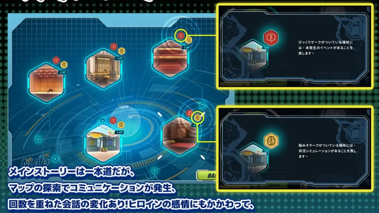 主线剧情为单线,但在地图探索中可触发交流,随着对话次数增加,内容会发生变化!这也会影响女主角的情感,超过70种以上的事件等待体验!